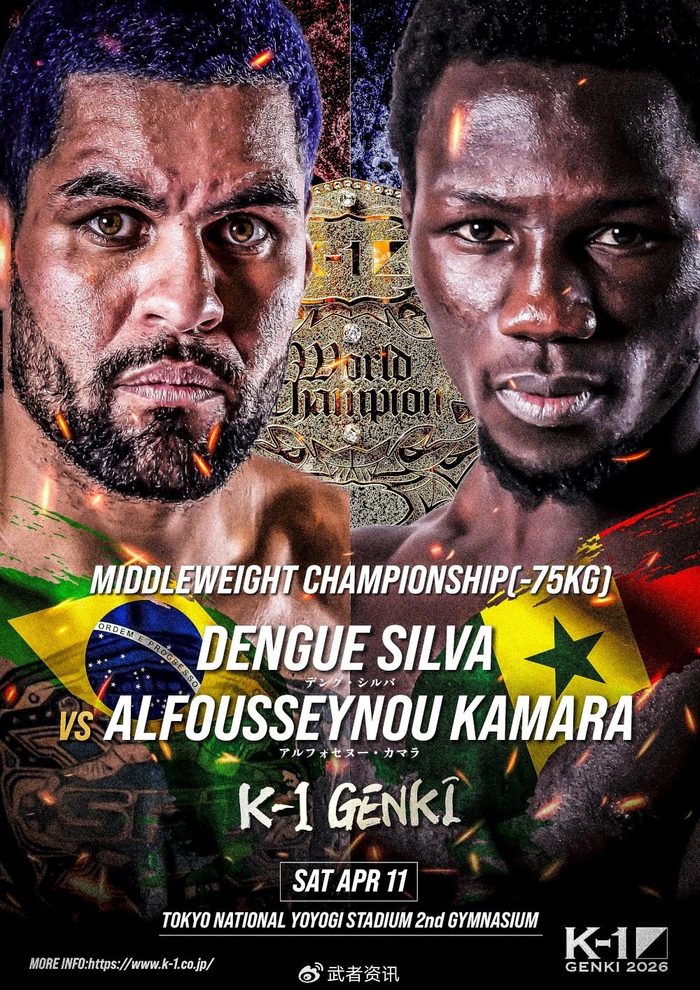 本次比赛有三场冠军金腰带头衔战:K-1重量级冠军争霸赛,现任冠军阿里尔·马查多(62-14 ,44 KO)对阵挑战者克劳迪奥·伊斯特拉特(61-25-3, 34 KO, 1 N)。空缺的K-1超次中量级(-70kg)冠军争霸赛,乔纳斯·萨尔西查(27-4, 10 KO)对阵达利尔·维尔东克(18-8, 11 KO)。空缺的K-1中量级(-75KG)冠军争霸赛,邓圭·席尔瓦(48-6, 26 KO)对阵阿尔弗赛努·卡马拉(35-5, 20 KO)。